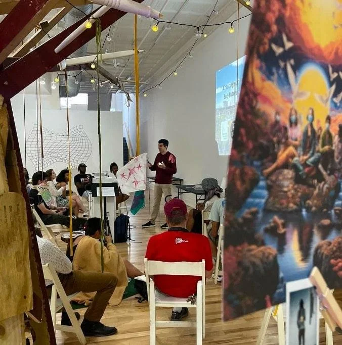 Richmond Futurism is an art activation by Ricky Parker that showcases a transformative vision for the future of Richmond, one that is inclusive, equitable, and sustainable. Through a diverse range of artistic expressions and immersive experiences the exhibition will inspire dialogue, challenge assumptions, and ignite imaginations about what Richmond could become. The mission is to highlight the work of local artists and community organizations amplifying their voices and visons for a vibrant and inclusive future for all residents.