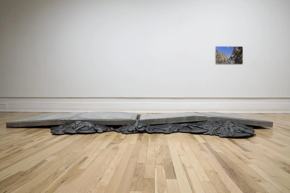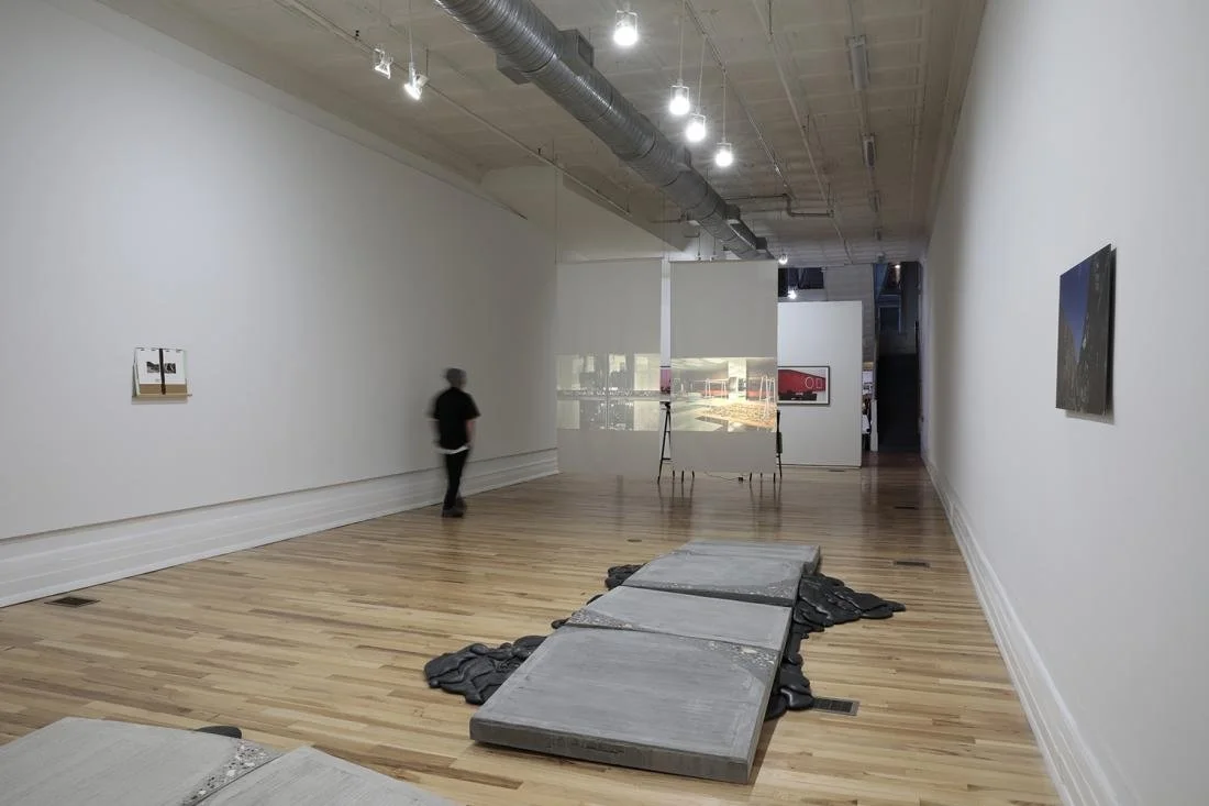 In AICA Cox-Richard’s work draws from her ongoing interaction with materials that undergird canonical art and cultural histories. Her concrete sculptures, reminiscent of fractured sidewalks, are made of aggregate materials often collected from sites of their intended exhibition. And documentation-oriented and found objects like archival images and a semi-truck rear view mirror quietly trace personal journeys, while prominently cultivating new versions of common artistic narratives. Quasi-artifacts are points of departure like classical statues of female bodies in museum education departments to the site preservation of events considered part of Land Art and its presumed authors. Through her own act of material erosion and institutional excavation, she exposes the overlooked composite experiences that make up cultural legacies—their material baggage. Recasting dominant, gendered narratives within art and material histories, Cox-Richard unveils how institutional value systems are often perpetuated by investment in consistency in art history over care, respect, credit, and the sharing of resources.