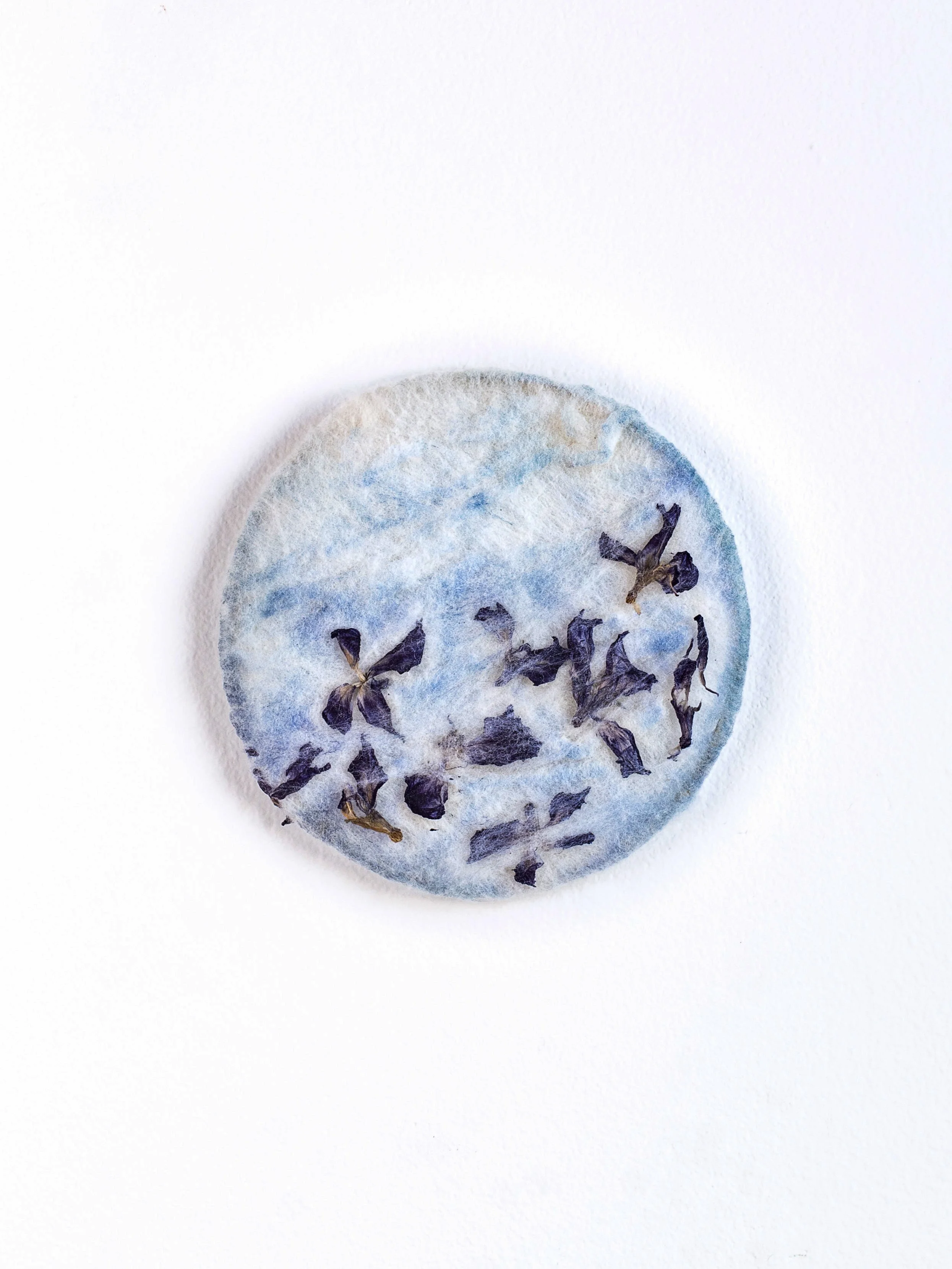 Lindsay Parnell and Natasha Kovac, Peaflower Circles, 2019, Felted wool and peaflowers, dimensions vary