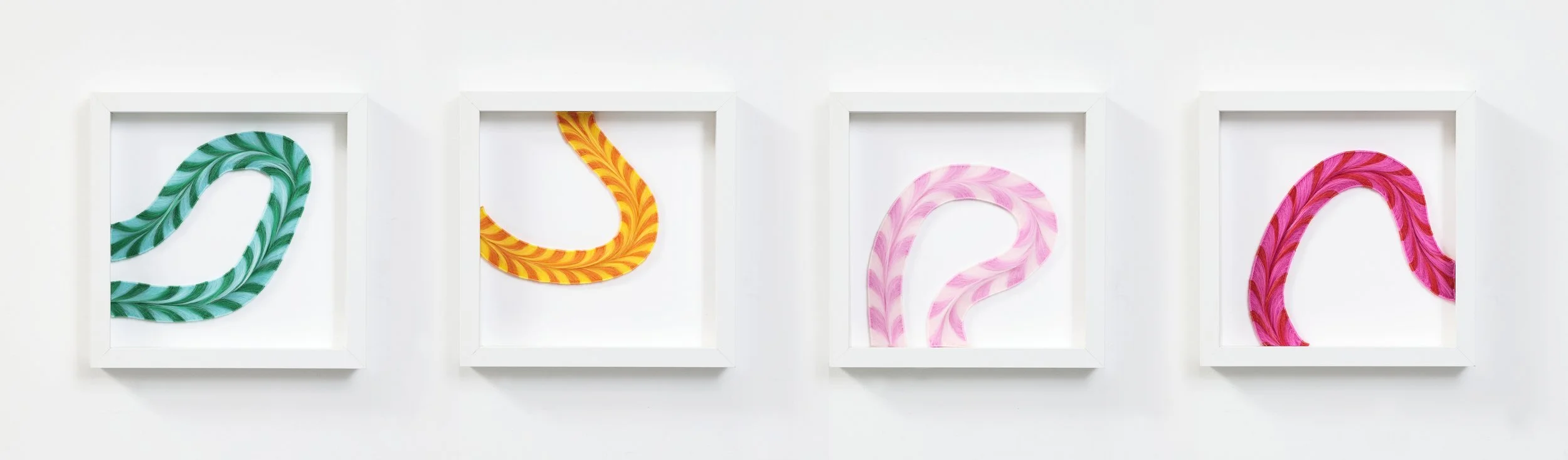Meg Roberts Arsenovic, Knot studies, installation view, 2020, Faux fur on paper, 10 x 10 inches each, Courtesy of Quirk Gallery