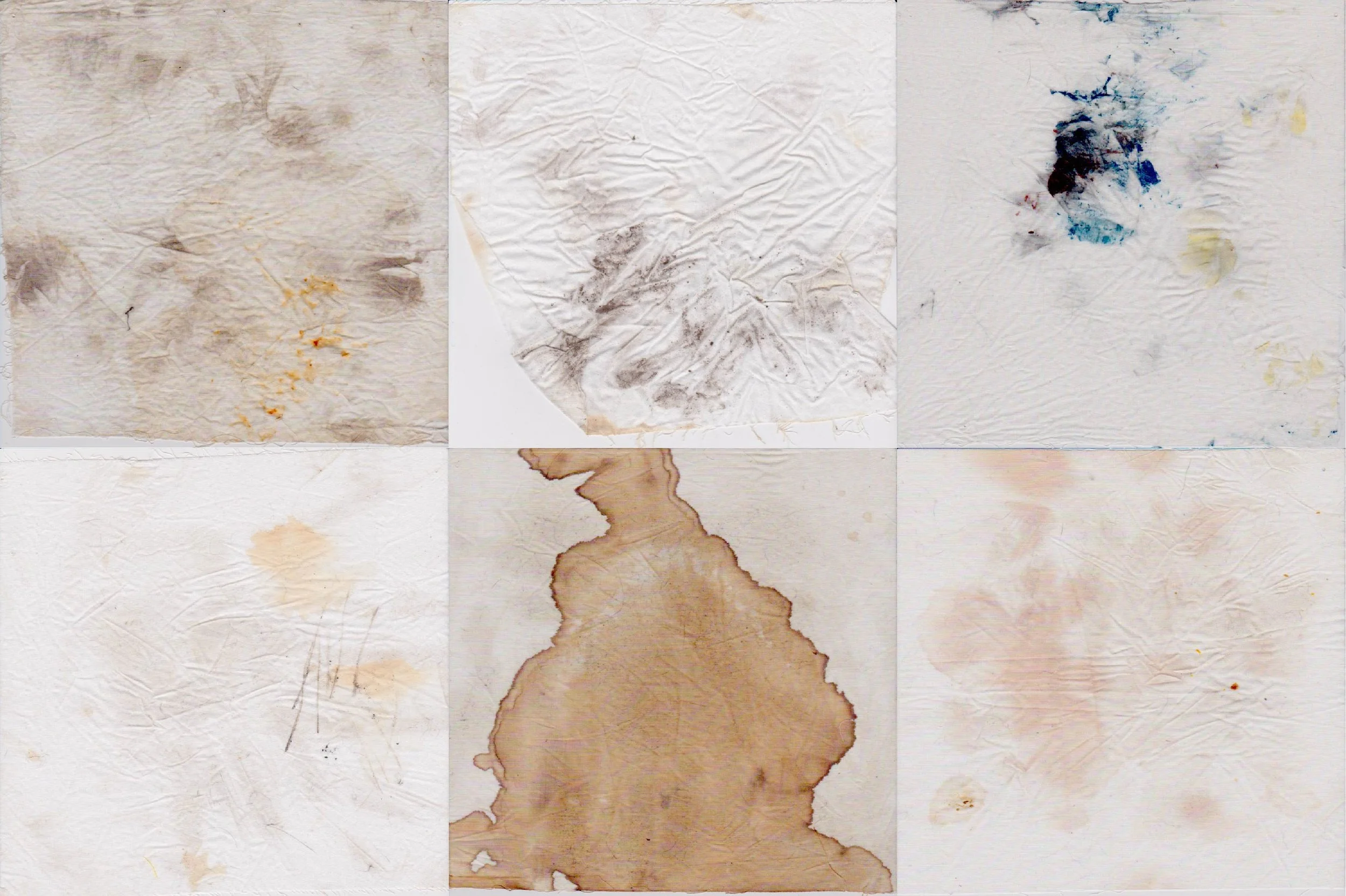 Nava Levenson, A Napkin a Day, selected dates, 2019, Linen and residual matter, 12 x 12 inches