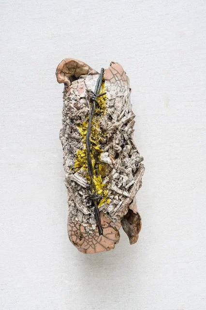 In Kendra Dawn Wadsworth’s paintings and ceramics, coarse, jagged surfaces expose her kinetic process. Competing dualities — confinement/exposure, entrapment/liberation, crumpling/unfolding, surface/depth — move across and through her works. These juxtapositions disclose a sensibility towards chaos that Wadsworth cultivates through intuition and material responsiveness. Yet, while Wadsworth engages objects and forms that suggest conflict and struggle, her decomposition implies regeneration. The decay and deterioration on view offer their own forms of energy.