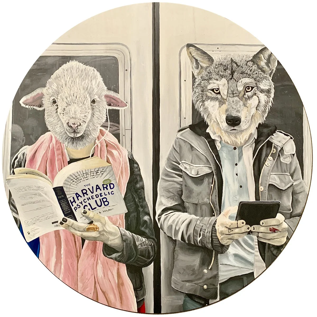 Emily Lingg, Psychedelic Instincts, 2019, Acrylic on wood, 23 x 23inches