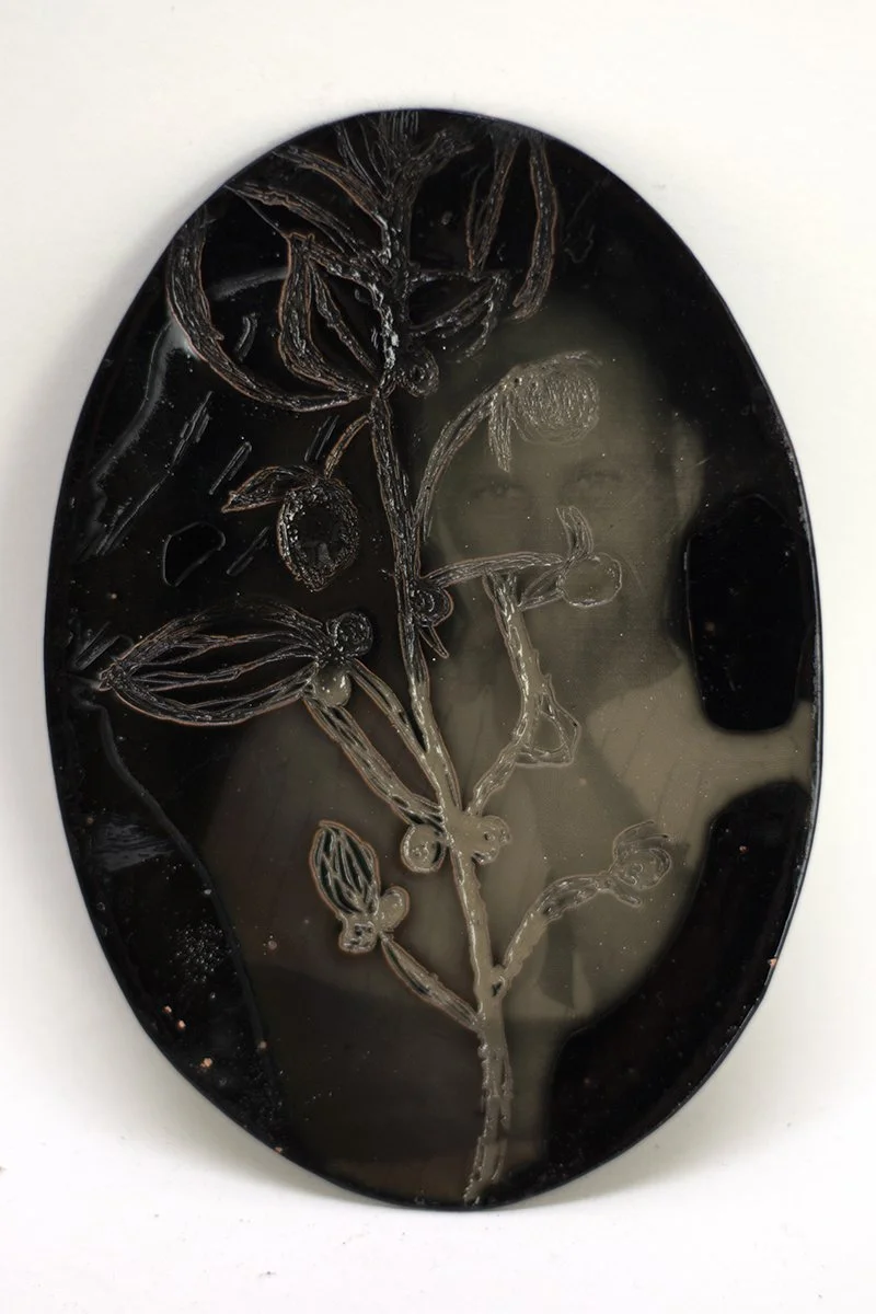 Emily Setelin, John, 2019, Brass, Silver Gelatin Emulsion, Spray paint, 3.5 x 6 inches