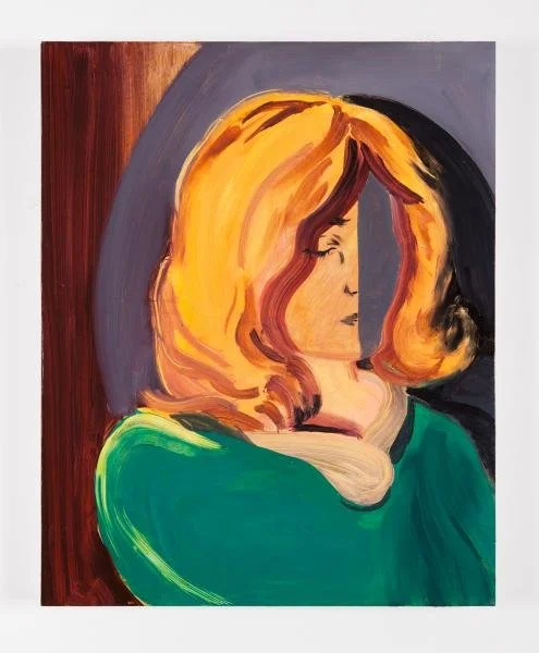Some of the works in Point Of Departure play less directly with physical form and focus more on addressing the history, clichés, and tropes that riddle the history of painting in a witty and self-aware manner. Stephen Benenson's works directly reference 15th Century Italian paintings in their compositional structure while working to make common information seem new by intentionally drawing attention to the way that the viewer reads them. Likewise, Mr. Locks by Sharon Madanes utilizes the scene of a window display as a starting point to speak to ideas of surveillance and egocentric perspective in relation to the viewer. Additionally, Maureen St. Vincent investigates the place of femininity and comedy within painting while Haley Josephs attempts to capture elusive moments, a particularly challenging task to tackle through painting.