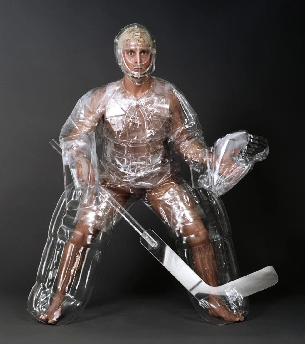 The exhibit is anchored by three works: a shrunken hockey rink; an HD video projection documenting a match played in the rink (both titled The Obstruction of Action by the Presence of Form); and a video of compiled footage of athletes preparing to perform titled The Obstruction of Action by the Presence of Order.