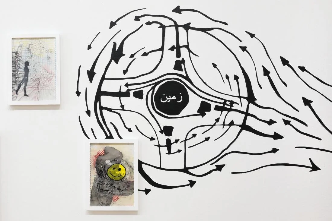 In Trans-Pakistan Zindabad (Facts about the Earth), Umber Majeed instills her own form of immersivity—her plethora of research materials will envelop the visitor. Atlases in Urdu, children’s books, real estate advertisements, and her uncle’s archives become drawings, interactive web-based media, collage, and vinyl. This installation is a sleek yet glitched and fractured rendering of a re-imagined Trans-Pakistan travel agency headquarters. Trans-Pakistan Zindabad (Facts about the Earth) infiltrates the façade of tourism and leisure. Majeed uses its specific visual language (in her words, “South Asian digital kitsch”) to chart the residues and impact of technocratic regimes on the formation of national identities, urban planning, and the problematic centrality of the West.
